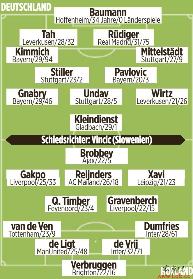 零点吧足球10月14日讯 北京时间明天凌晨2时45分,欧国联德国vs荷兰,德媒图片报对双方首发进行了预测。