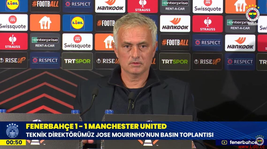 零点吧足球10月25日讯 欧联杯第3轮比赛,费内巴切1-1战平曼联,费内巴切官网放出了赛后穆帅的发布会采访。穆帅谈到了自己的红牌,曼联的表现等话题。