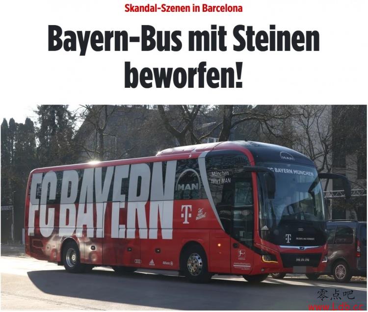 零点吧足球10月26日讯 《图片报》报道,拜仁的大巴在与巴萨的比赛前遭到袭击,被扔石头。