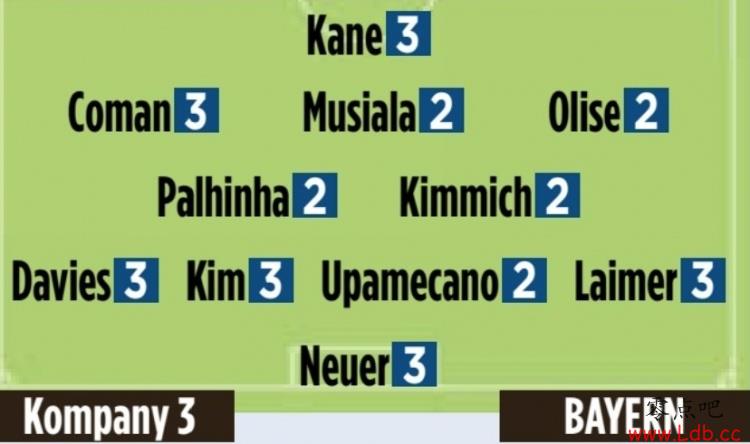 前卫:科曼(3分)、穆西亚拉(2分)、奥利塞(2分)