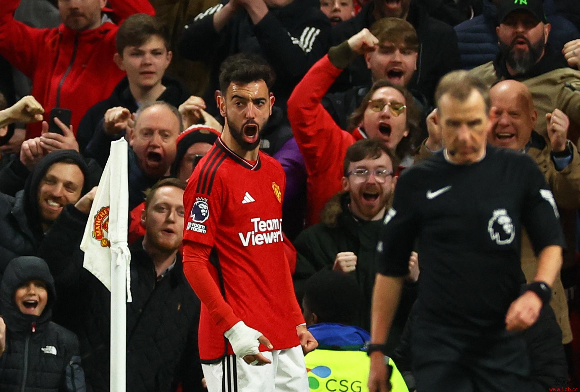 零点吧足球11月4日讯 本轮英超焦点战,曼联对阵切尔西的比赛正在进行。比赛第68分钟,霍伊伦造点,B费主罚命中。