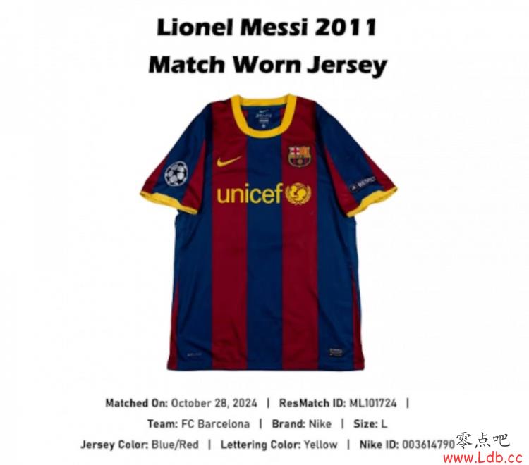 西媒表示,2011年欧冠半决赛首回合,梅西在伯纳乌球场上演梅开二度,帮助巴萨2-0击败皇马。这件比赛中穿着的球衣现正在Goldin网站拍卖,竞拍将于11月17日结束。