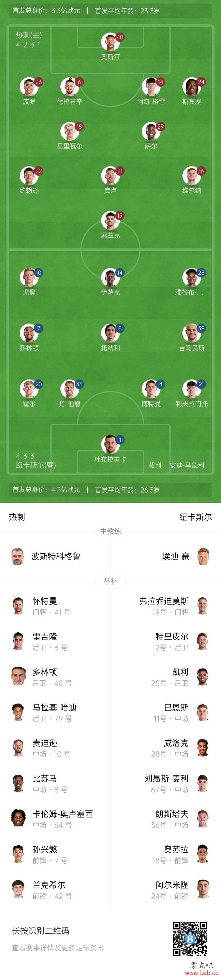 此外,队长孙兴慜也替补待命,澳波称让他替补是出于“战术选择”的原因。