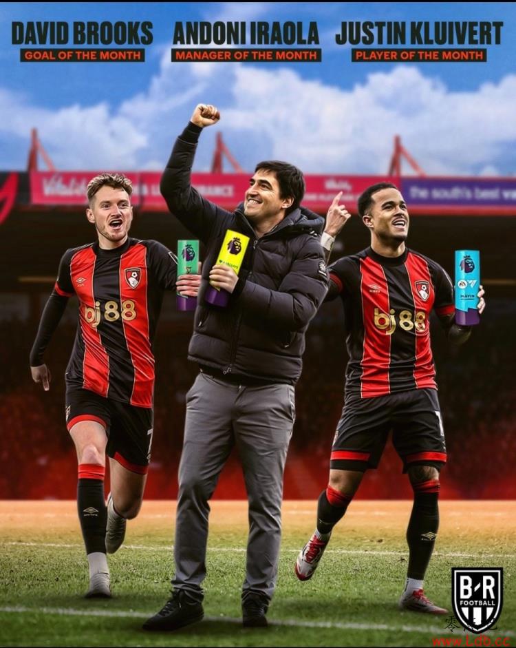伯恩茅斯在1月份英超取得3胜1平,主帅伊劳拉当选最佳主帅,而在4场比赛中5球2助攻的小克鲁伊维特当选本月最佳球员,边锋布鲁克斯在对阵埃弗顿比赛中的凌空破门也当选1月最佳进球。