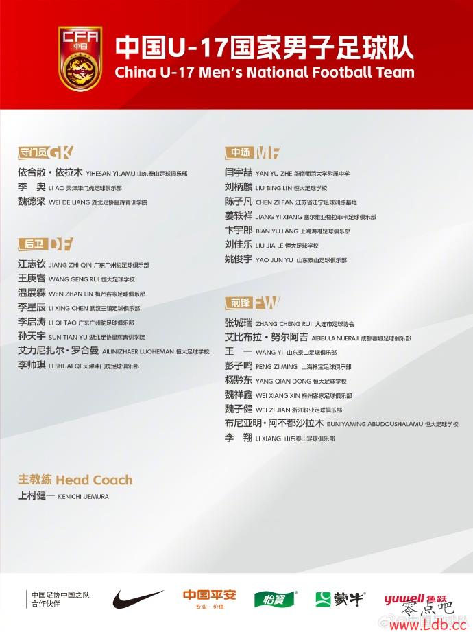 备战U17亚洲杯!U17国足名单:艾比布拉领衔,恒大足校6人入选