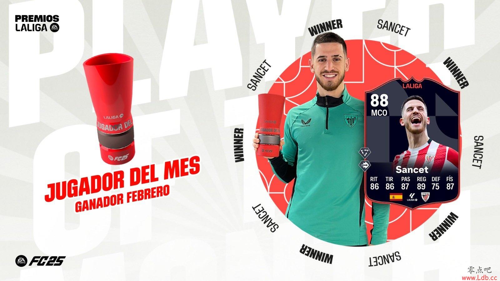 零点吧足球3月1日讯 西甲官方宣布,毕巴中场桑谢特当选联赛2月最佳球员。