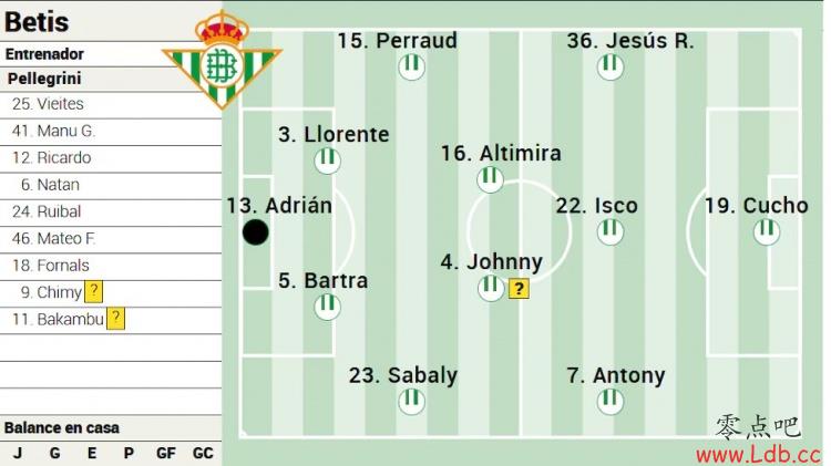 零点吧足球3月1日讯 明天凌晨西甲第26轮,贝蒂斯主场对阵皇马。《阿斯报》预测了本场比赛的贝蒂斯首发,安东尼出战,伊斯科战旧主。