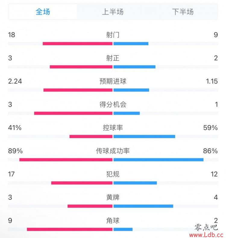 零点吧足球3月2日讯 本轮西甲,贝蒂斯2-1战胜皇马,两队全场数据(皇马在后):