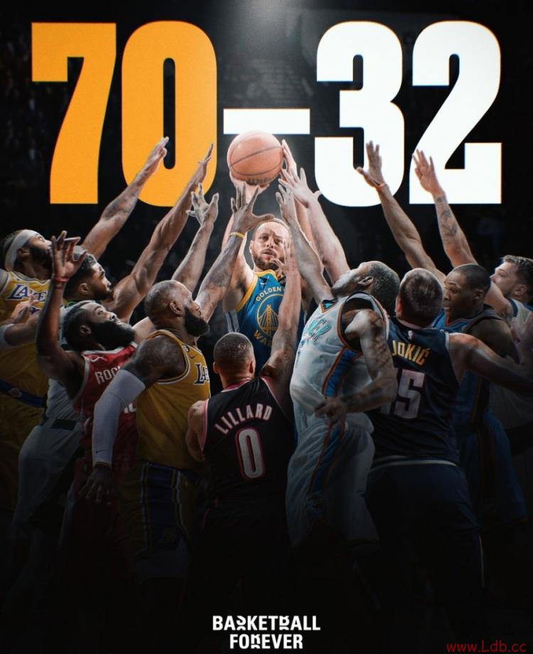 库里季后赛生涯面对现役NBA球星战绩合计70胜32负,详情如下: