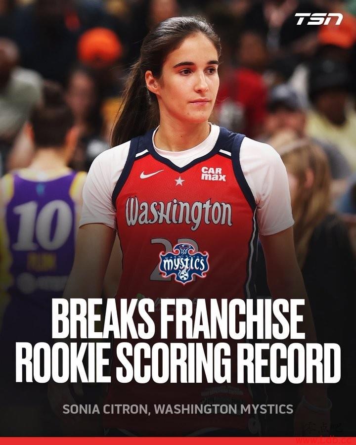 零点吧8月20日讯 WNBA常规赛华盛顿神秘人对阵康涅狄格太阳队,新秀索尼娅-西特龙打破队史纪律。