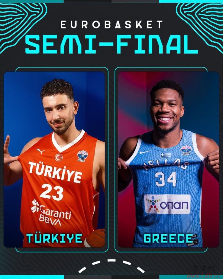 这样一来,本届欧锦赛第一组半决赛对阵出炉:希腊男篮将对阵土耳其男篮(北京时间9月12日,具体时间待定)。