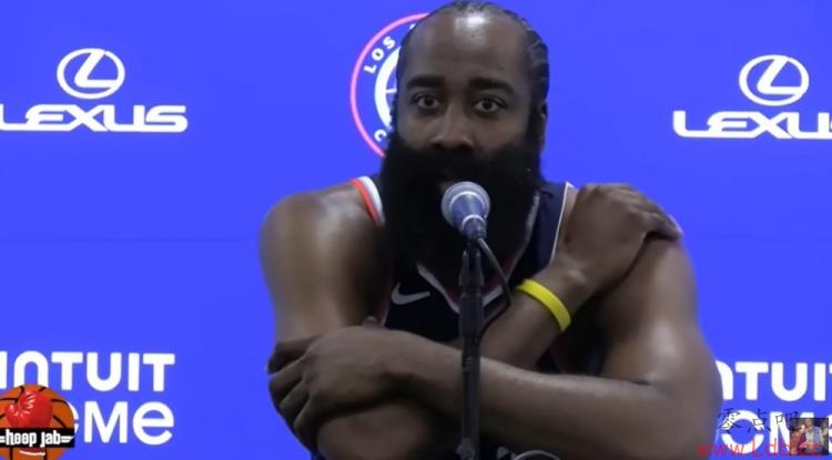 今日快船球星詹姆斯-哈登参加了球队媒体日活动