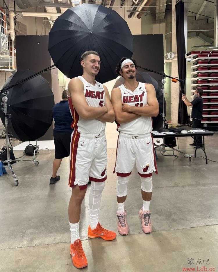 零点吧9月30日讯 热火官方社媒晒出了媒体日上约维奇和哈克斯的合影。从照片中可以看到,哈克斯一直踮着脚,想要减少和约维奇的身高劣势。