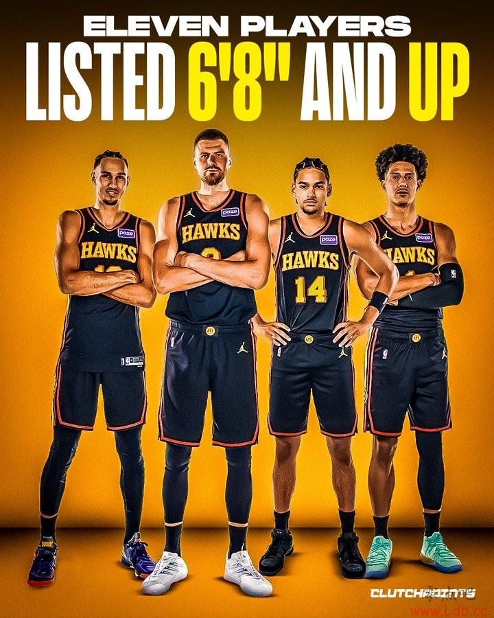 算上双向合同球员,老鹰全队共有13名球员超过6尺8寸(约2.03米)!