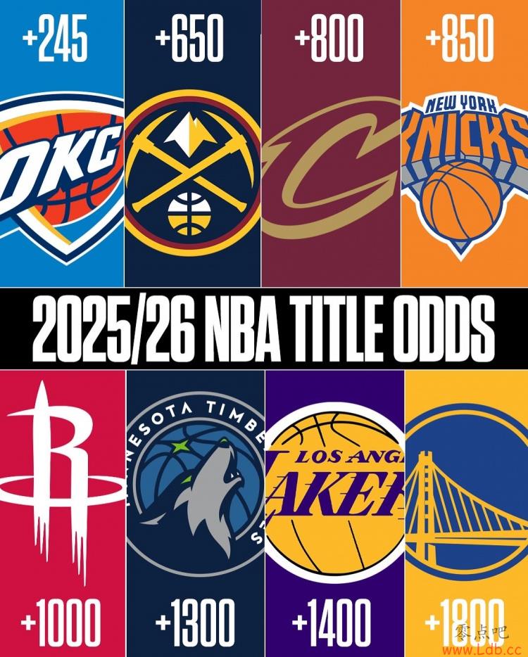 零点吧10月7日讯 NBC晒出了DraftKings给出的新赛季各队夺冠赔率,其中雷霆被视为最大夺冠热门。