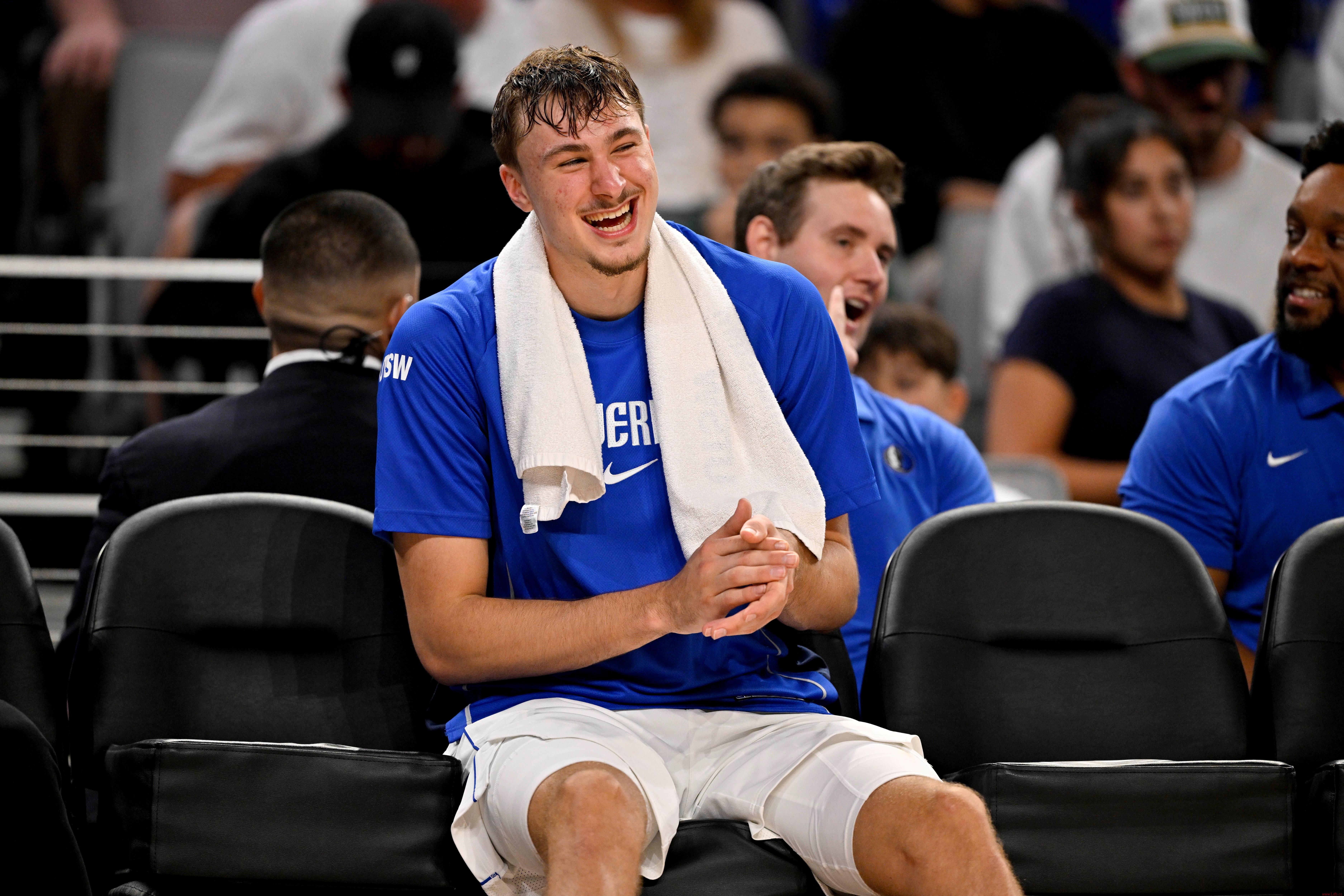 独行侠今日季前赛106-89击败雷霆,赛后,独行侠状元弗拉格接受媒体采访
