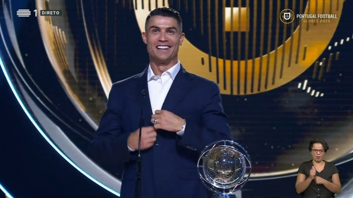 零点吧足球10月08日讯 在葡萄牙环球奖颁奖典礼上,C罗获颁萄牙环球声望奖,以表彰他整个职业生涯在俱乐部和国家队所做的贡献。