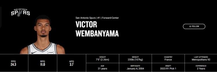 - 09日 马刺官方数据资料显示,文班亚马的身高从上...