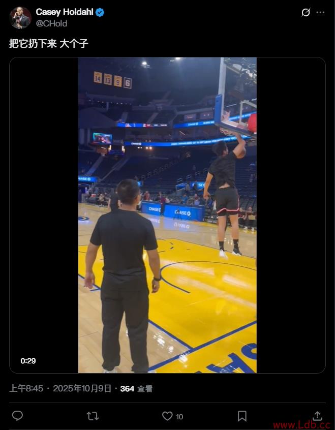 开拓者队记发杨瀚森赛前扣篮视频并配中文:把它扔下来 大个子