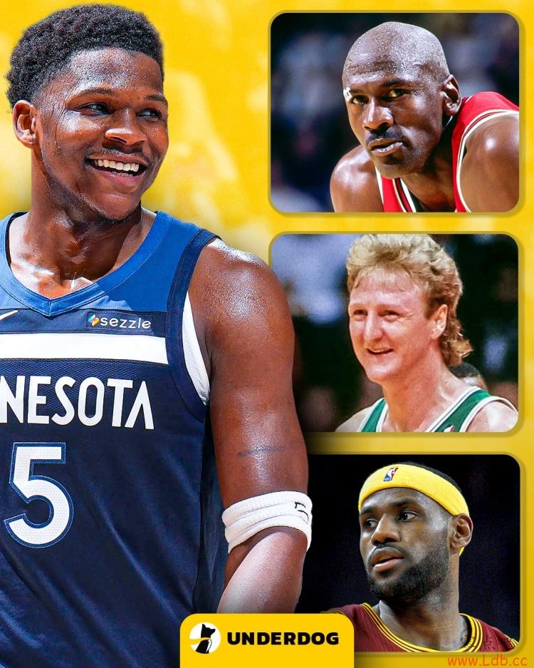 而在生涯前五年能达到此数据的,历史上仅有爱德华兹、乔丹、伯德还有詹姆斯。