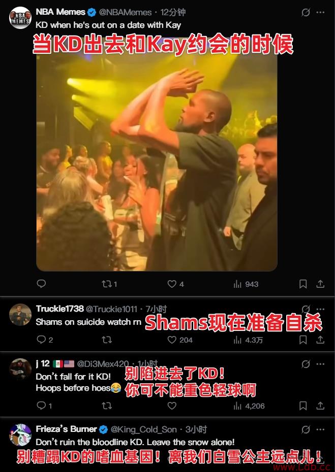 美女主持晒KD数据!美网友炸锅:小帅别重色轻球!Shams要割腕了