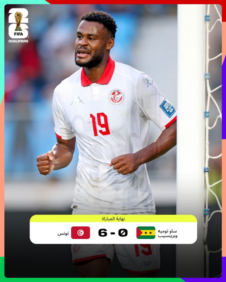 零点吧足球10月11日讯 北京时间今天0点,世预赛非洲区小组赛H组第9轮,已经直通明年世界杯的突尼斯客场6-0大胜圣多美和普林西比。