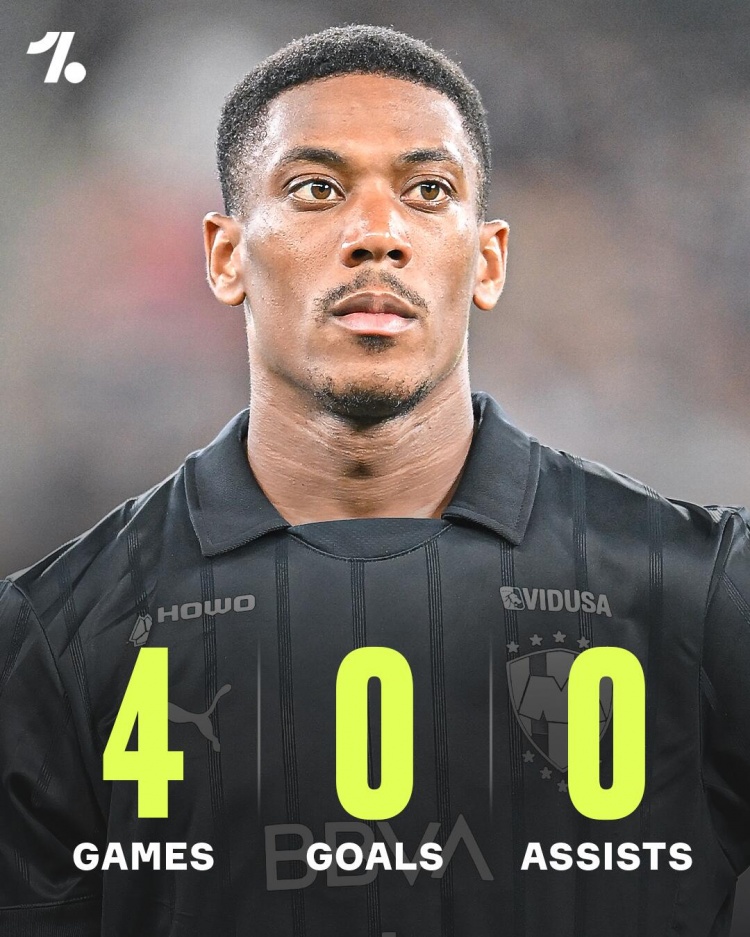 记者:马夏尔在蒙特雷踢得很挣扎,他已经8个月没有进球了