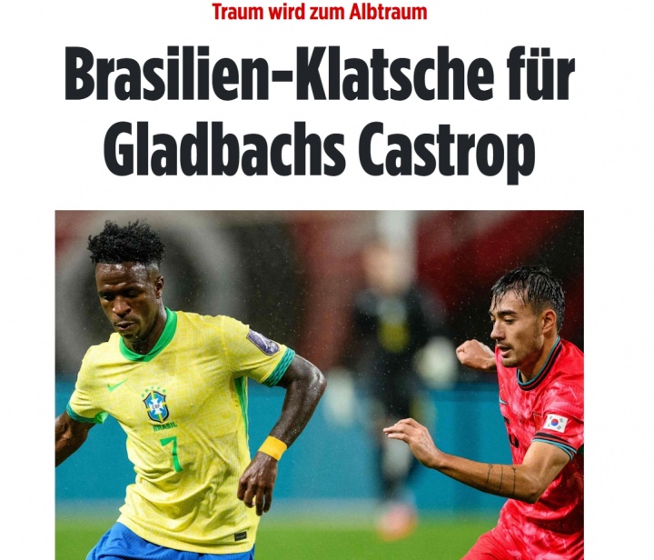 《图片报》以《美梦变噩梦:巴西队给门兴队的卡斯特罗普沉重一击》为题写道:“门兴中场卡斯特罗普经历了许多孩子在街头足球或俱乐部青训时就梦想的场景:代表国家队参加对阵巴西队的比赛!