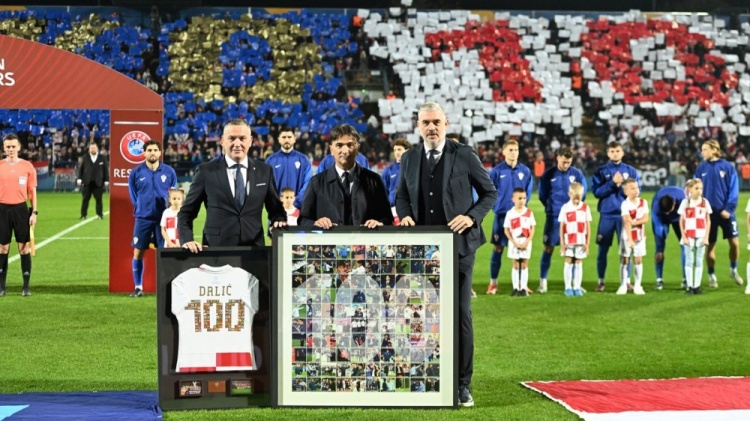 克罗地亚0-0战平捷克的上场比赛,达利奇达成执教克罗地亚100场里程碑,对阵直布罗陀赛前他获赠纪念球衣和相框。