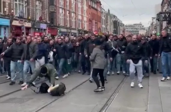 克拉克在X平台上表示:“今天在都柏林,我本想是拍摄一场游行,但他们抢走了我的相机并将史蒂夫推倒。他们还踢他的头,他无法起身,他们继续踢他。他们是沙尔克04的足球流氓,我感到非常震惊和厌恶!”