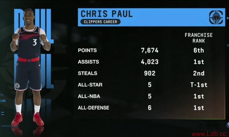 洛杉矶船长!保罗快船时期助攻&入选最佳阵等4项数据队史第一