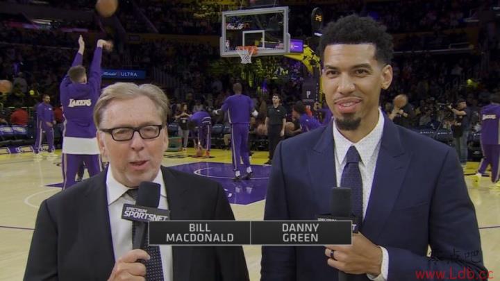 今日前NBA球员、现湖人电台Spectrum SportsNet解说员丹尼-格林现场解说湖人VS勇士的季前赛。