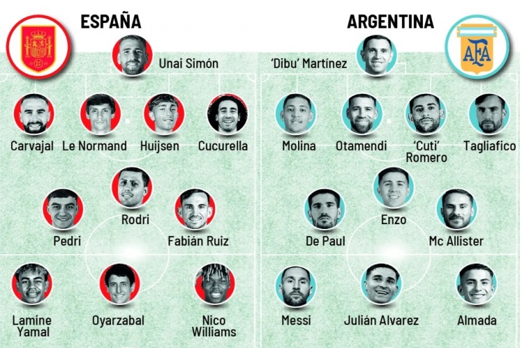 零点吧足球10月13日讯 根据《马卡报》报道,西班牙队vs阿根廷队的欧美杯可能明年3月在多哈进行,《马卡报》随后撰文对比了两队首发情况。