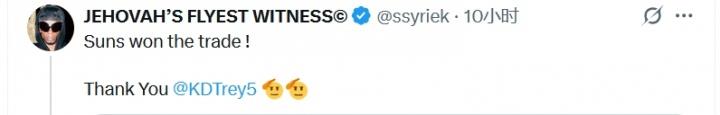网友配文道:“这笔交易是太阳赢了,谢谢你@杜兰特????”
