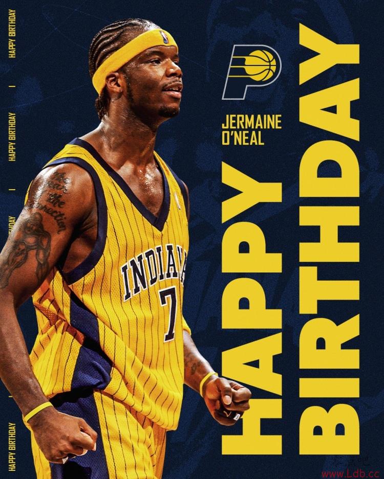 今天是步行者名宿杰梅因-奥尼尔(小奥尼尔)的47岁生日,步行者官方也在第一时间送上生日祝福