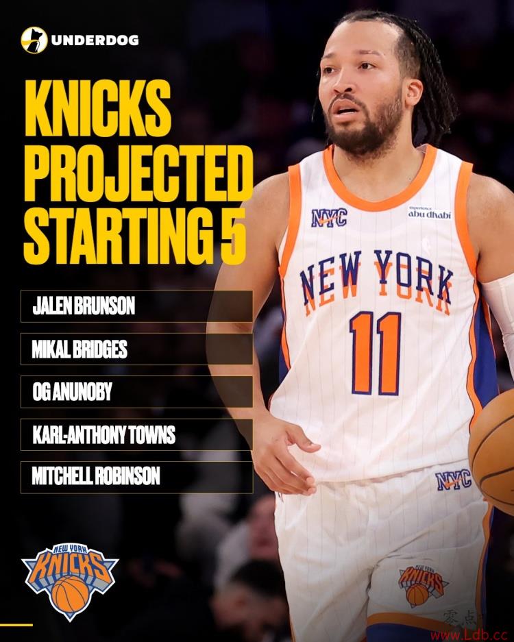 零点吧10月15日讯 美媒Underdog NBA报道,他们根据尼克斯目前阵容,预测了球队新赛季的首发。