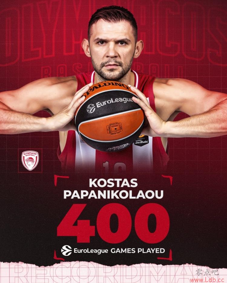 奥林匹亚科斯官方社媒更新动态,球队队长科斯塔斯-帕帕尼古拉乌已经完成了400场欧篮联的里程碑