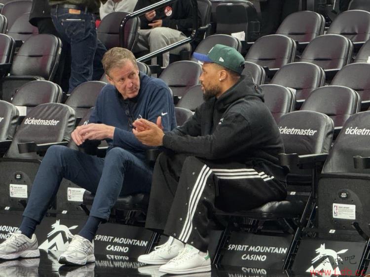 曾共事9年!勇士助教斯托茨和昔日爱徒利拉德赛前场边聊天