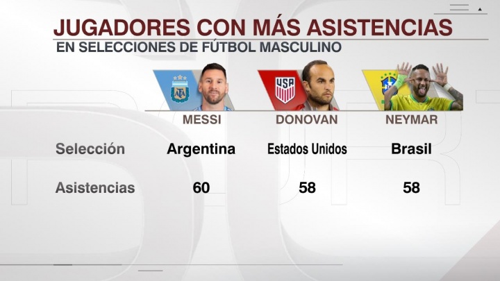 据ESPN阿根廷统计梅西已经在阿根廷队送出了60次助攻,超越内马尔和多诺万的58次,成为历史国家队助攻王。
