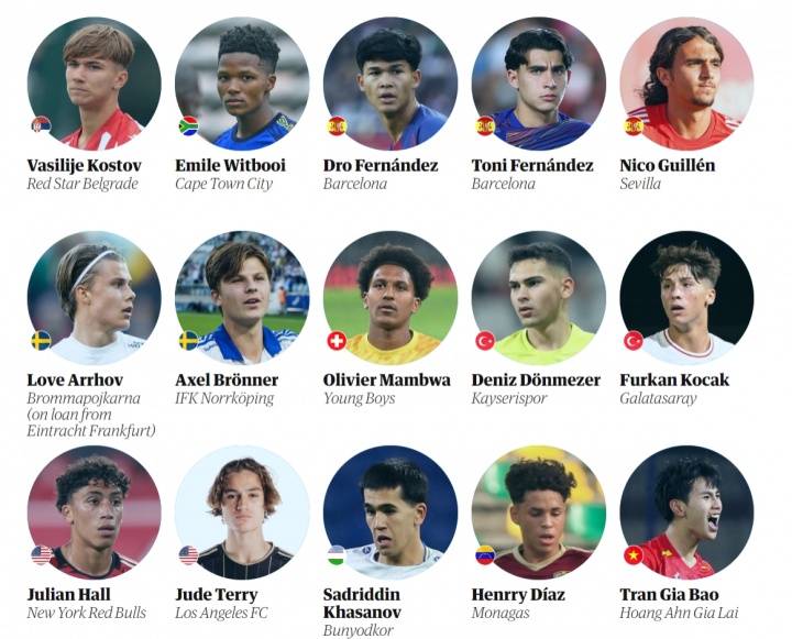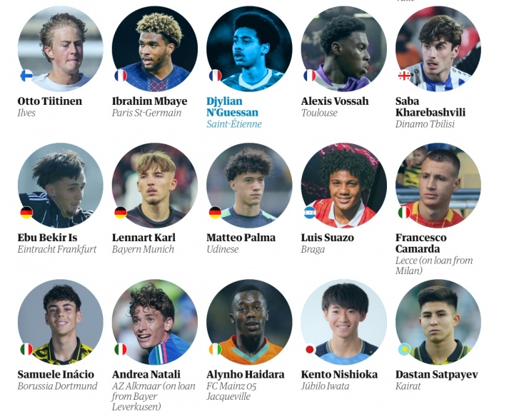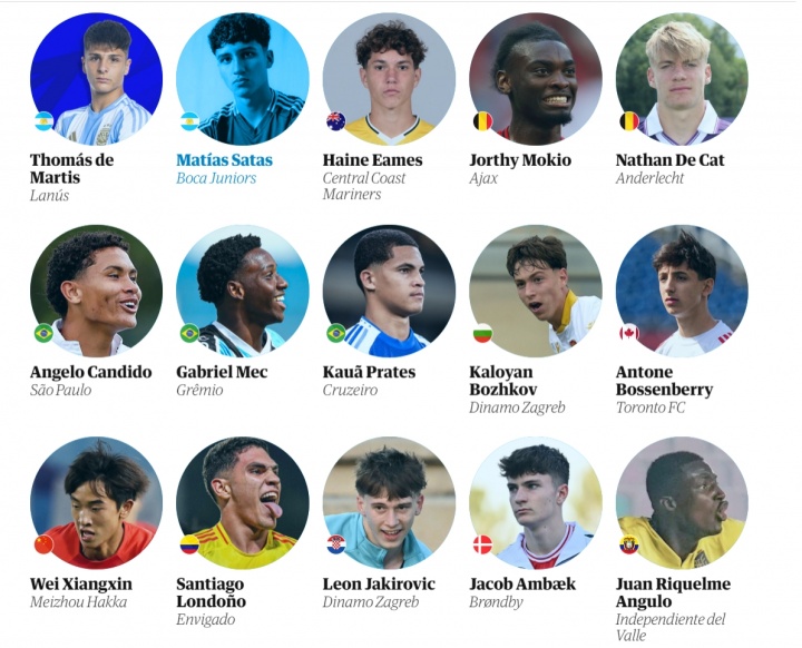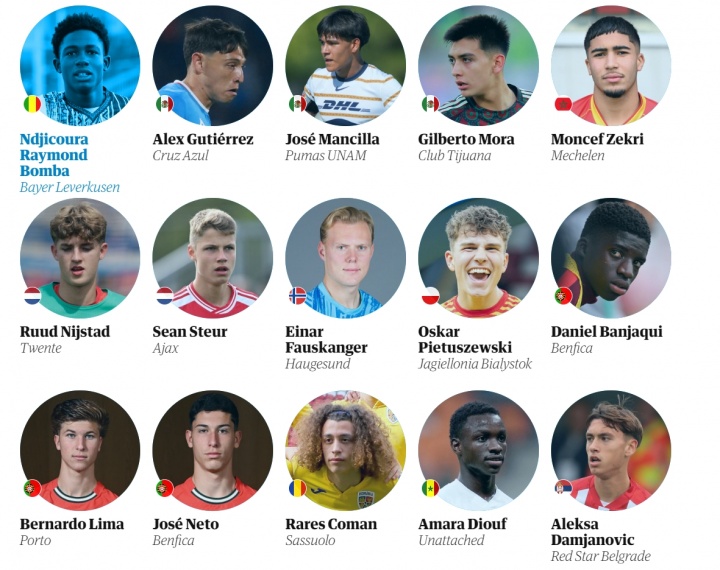 卫报评足坛08年出生60大新星完整名单(不分名次):