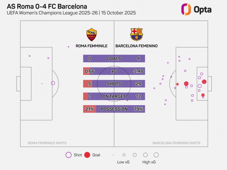 零点吧足球10月16日讯 女足欧冠联赛阶段第二轮比赛,巴萨女足客场4-0大胜罗马女足。