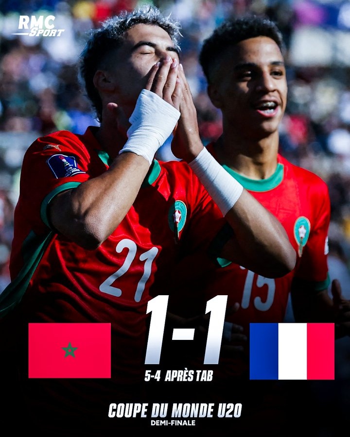 零点吧足球10月16日讯 世青赛(U20世界杯)半决赛,摩洛哥常规时间1-1战平法国,最终在点球大战中取胜,晋级决赛。
