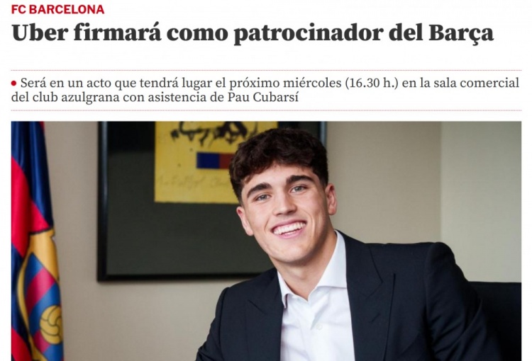 据报道,巴萨后卫库巴西将出席,他已经与Uber有合作关系,在取得驾照之前,他曾乘坐该公司的车辆前往训练场。巴萨总经理曼内尔-德尔里奥以及Uber伊比利亚区总经理费利佩-费尔南德斯-阿兰布鲁也将出席活动。