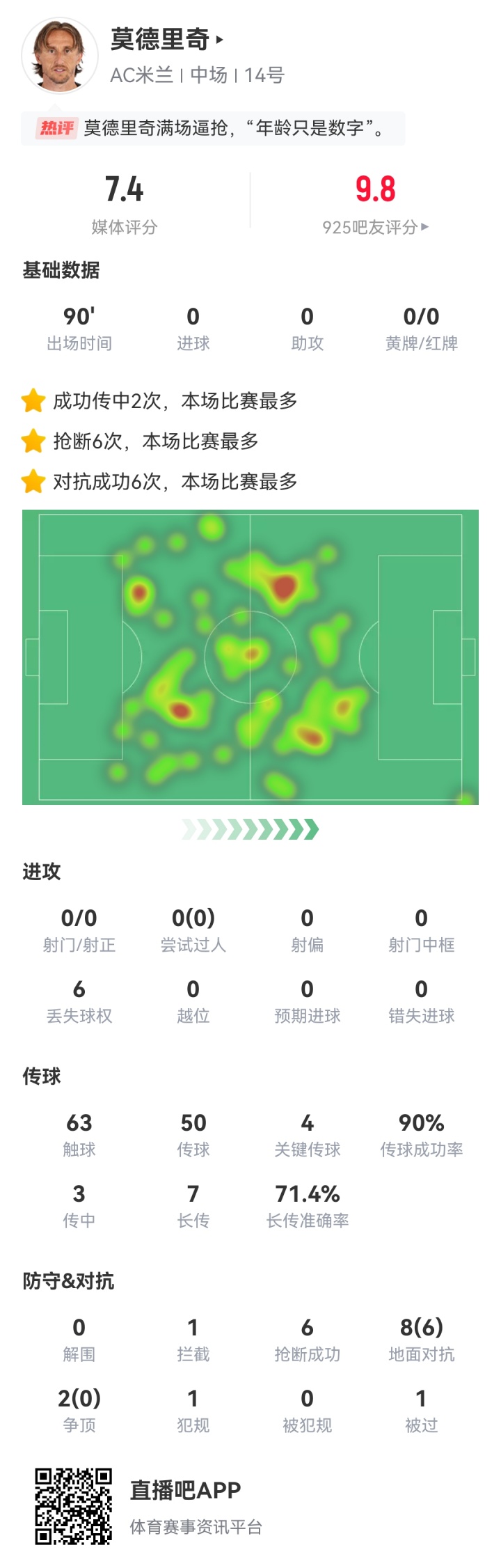 零点吧足球10月20日讯 凌晨意甲第7轮,AC米兰2-1战胜佛罗伦萨。据媒体数据统计,莫德里奇在这场比赛中才吃到他来意甲后的首次犯规。