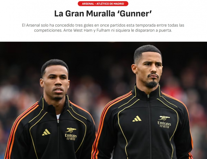 在本赛季的11场比赛中,马德里竞技接下来的欧冠对手阿森纳场均仅失0.27球。这简直是骇人听闻的数据。尤其是考虑到,他们唯一在运动战中的失球,是由世界上最好的前锋之一哈兰德打入的。另外两个失球则来自定位球。在欧冠这一顶级赛事中,在面对过毕尔巴鄂竞技(0-2)和奥林匹亚科斯(2-0)之后,枪手至今还不知道失球是什么滋味。“匪帅”西蒙尼的弟子们最好备足弹药、校准准星,再前往做客酋长球场。