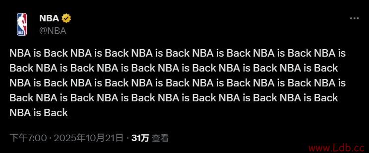 NBA官推今日更新了推文,来给明日的揭幕战进行预热,写道:NBA就要回归啦啦啦啦啦啦啦