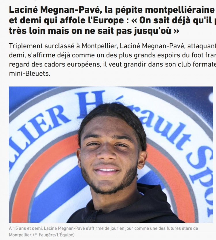 该媒体指出,在蒙彼利埃连续跳级三个年龄段的15岁半前锋默格南,已俨然成为法国足球最璀璨的希望之星。在欧洲豪强的密切关注下,他渴望在培养他的俱乐部与法国青年队中稳步成长。
