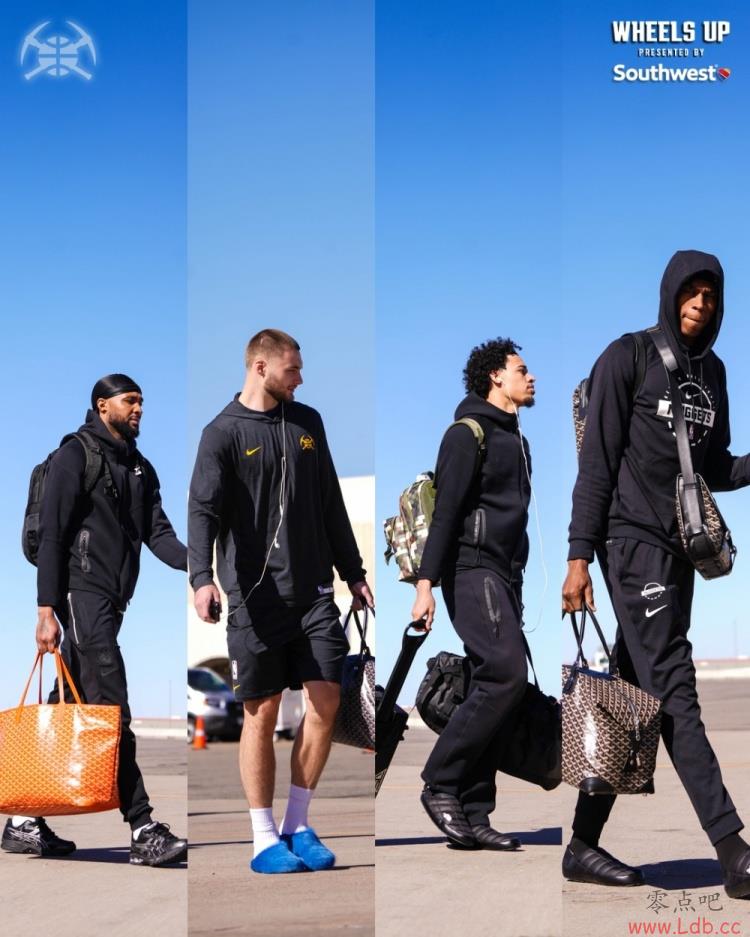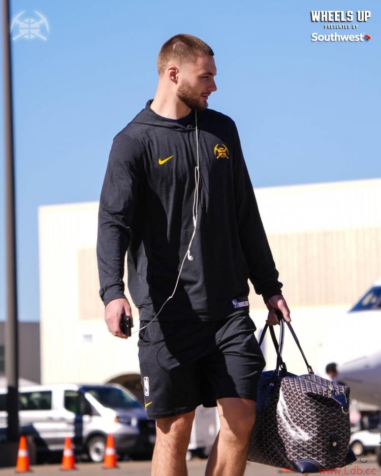 掘金登机飞往旧金山 清一色黑色运动装主打一个免费