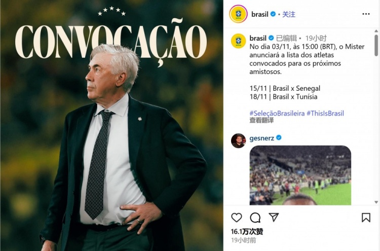 零点吧足球10月23日讯 据巴西国家队社媒账号发布的消息,该队下一期的集训名单将于11月3日公布,下个月国际比赛日巴西将与塞内加尔、突尼斯两队踢友谊赛,为明年世界杯热身并进一步考察球员。