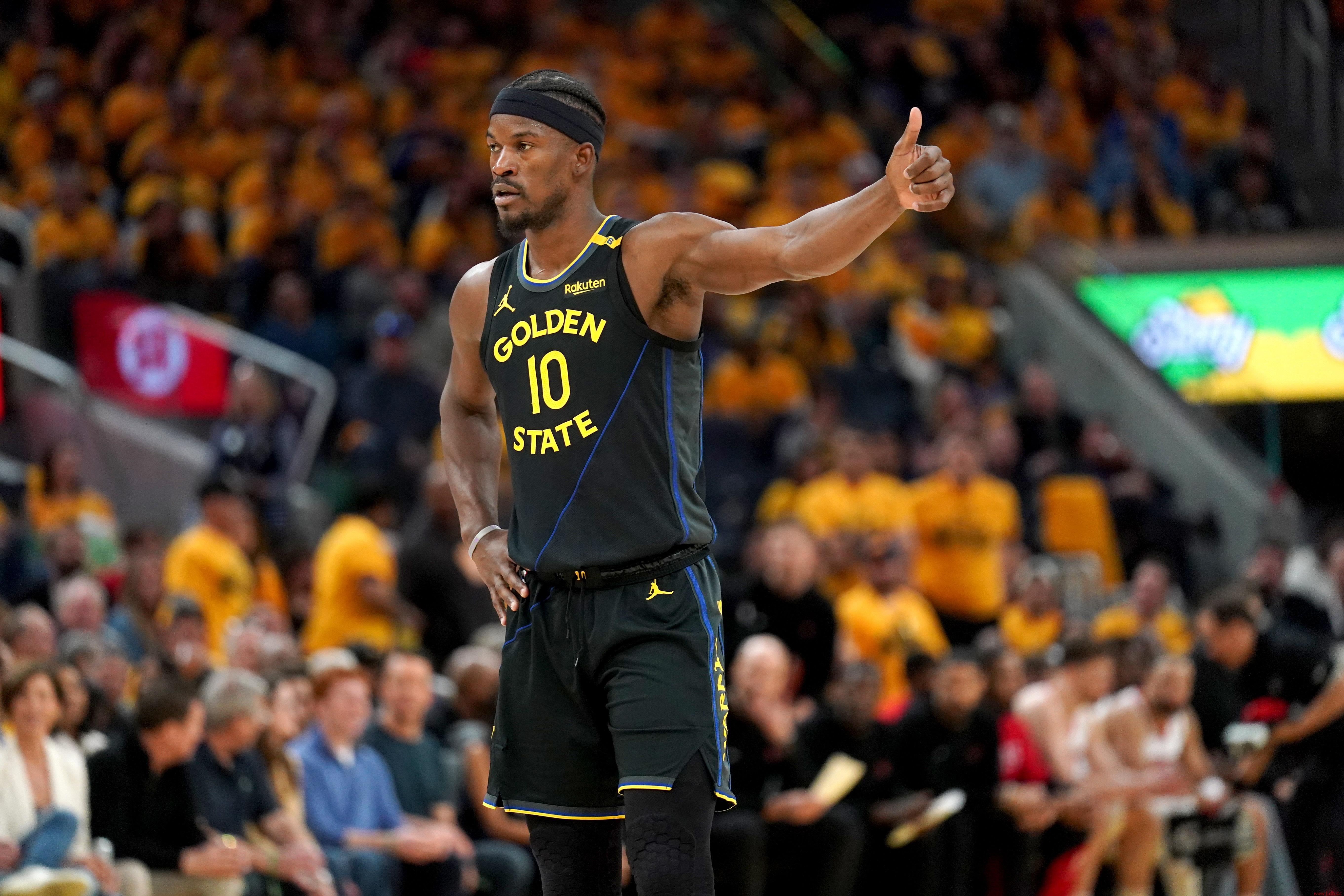 NBA常规赛,勇士加时137-131战胜掘金,巴特勒赛后在场边接受了媒体采访